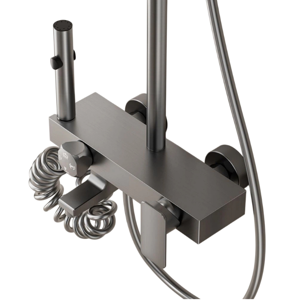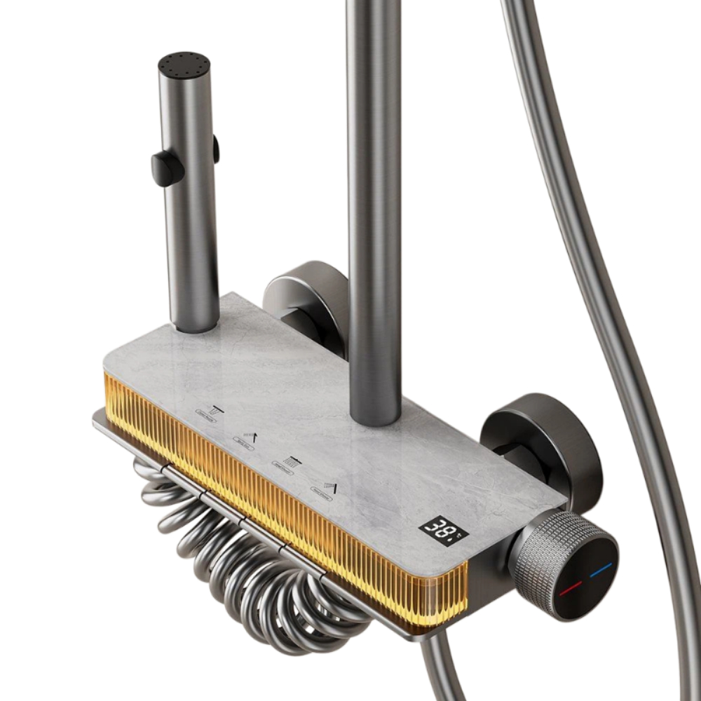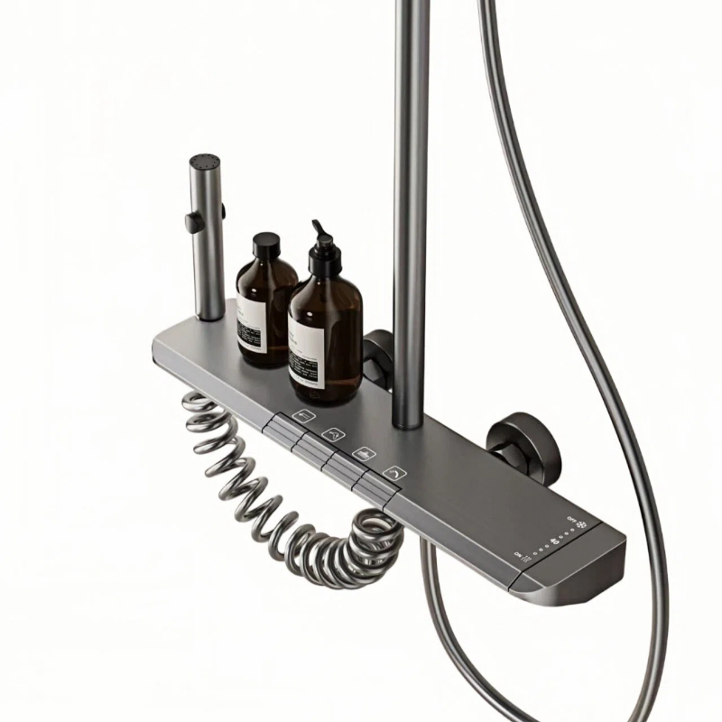 Luxury Thermostatic Shower Set with Aluminum Body 4-Function Water Outlet Shelf