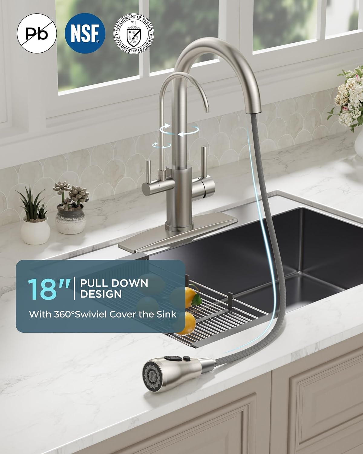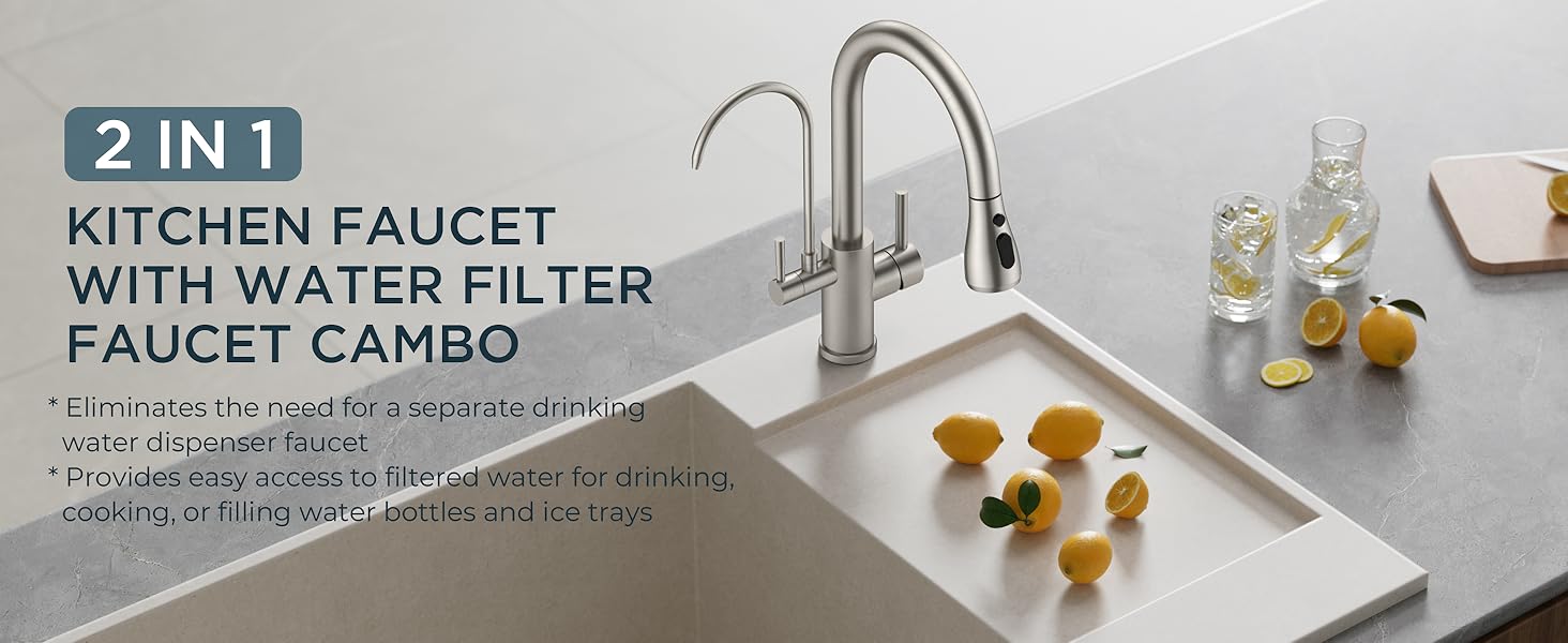 360 Swivel, Built In Water Filter, Easy to Install, Lead Free, Pull Out Sprayer