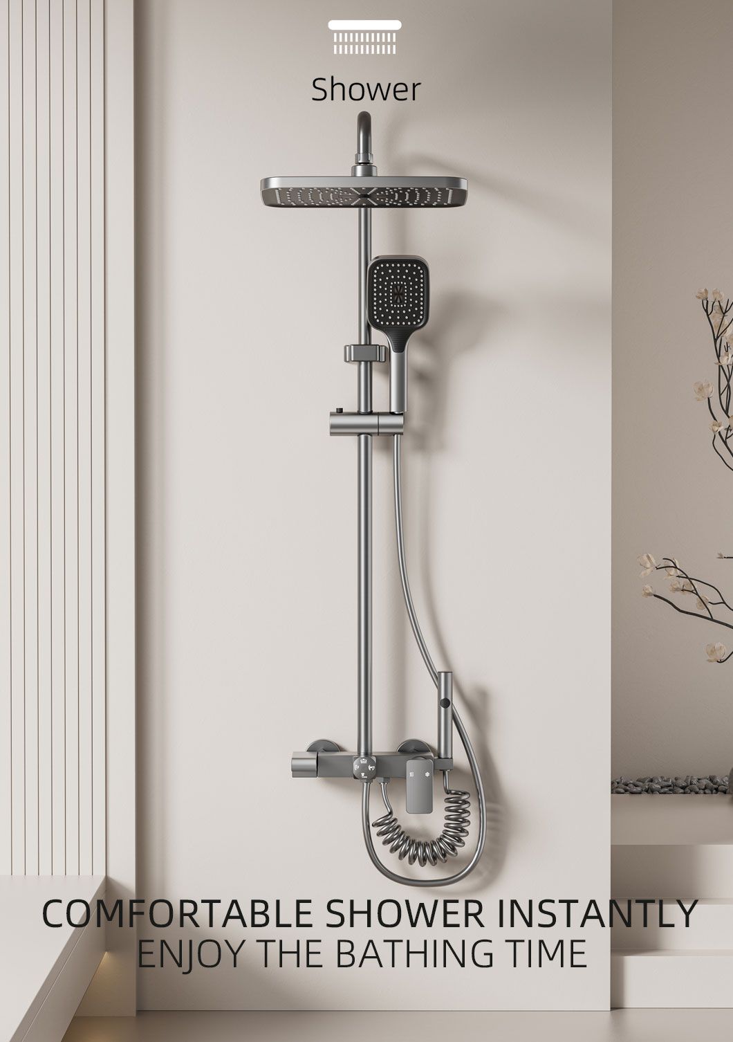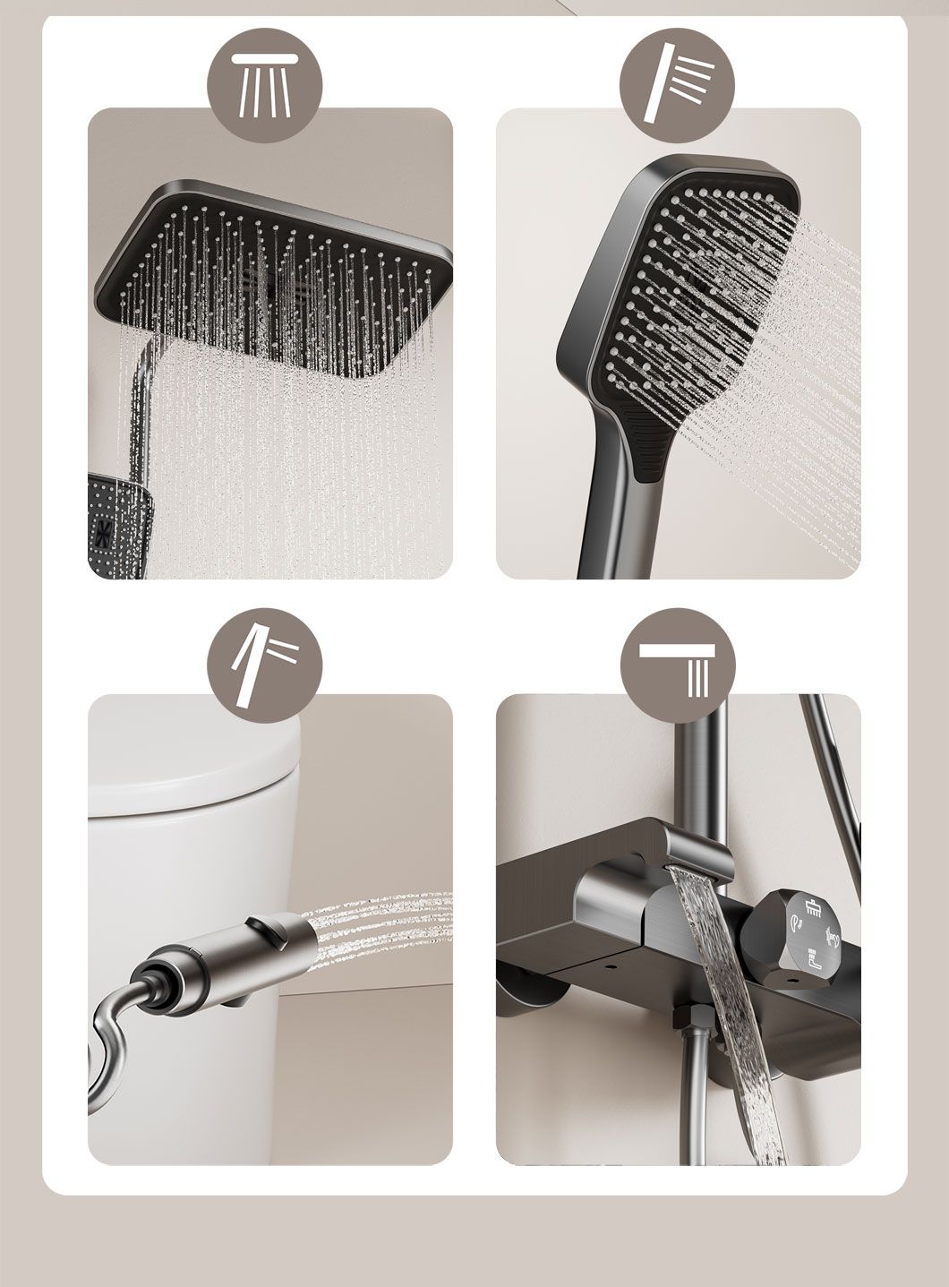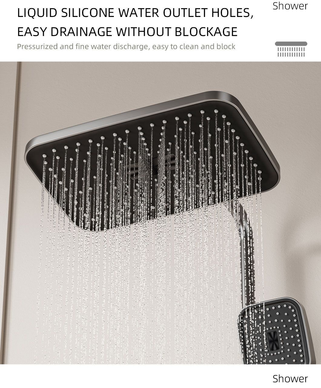 This bathroom shower set comes with both a rainfall headshower and a handheld shower, meeting all your daily bathing needs. The rainfall head delivers a gentle, full-coverage water flow for a relaxing spa-like experience, while the handheld shower offers flexibility for targeted cleaning, hair washing, or bathing kids and pets. Made of high-quality, anti-rust material, it is durable and easy to clean. With a simple and modern design, it fits perfectly in any household bathroom, and installation is quick and hassle-free.