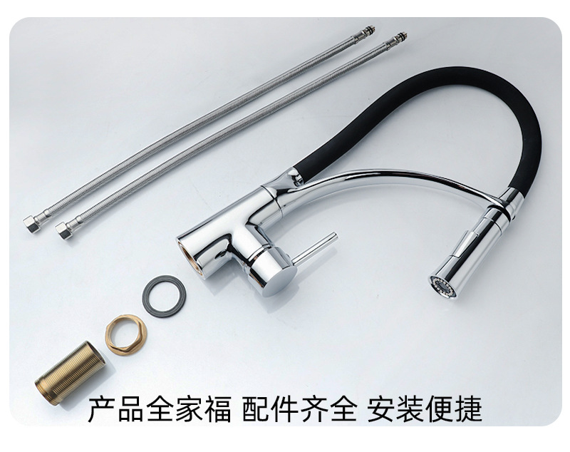 Kitchen electroplating sink single-tube faucet hot and cold dual-purpose pull-out household sink rotating copper water tap brass mixer
