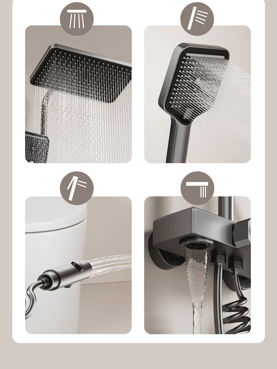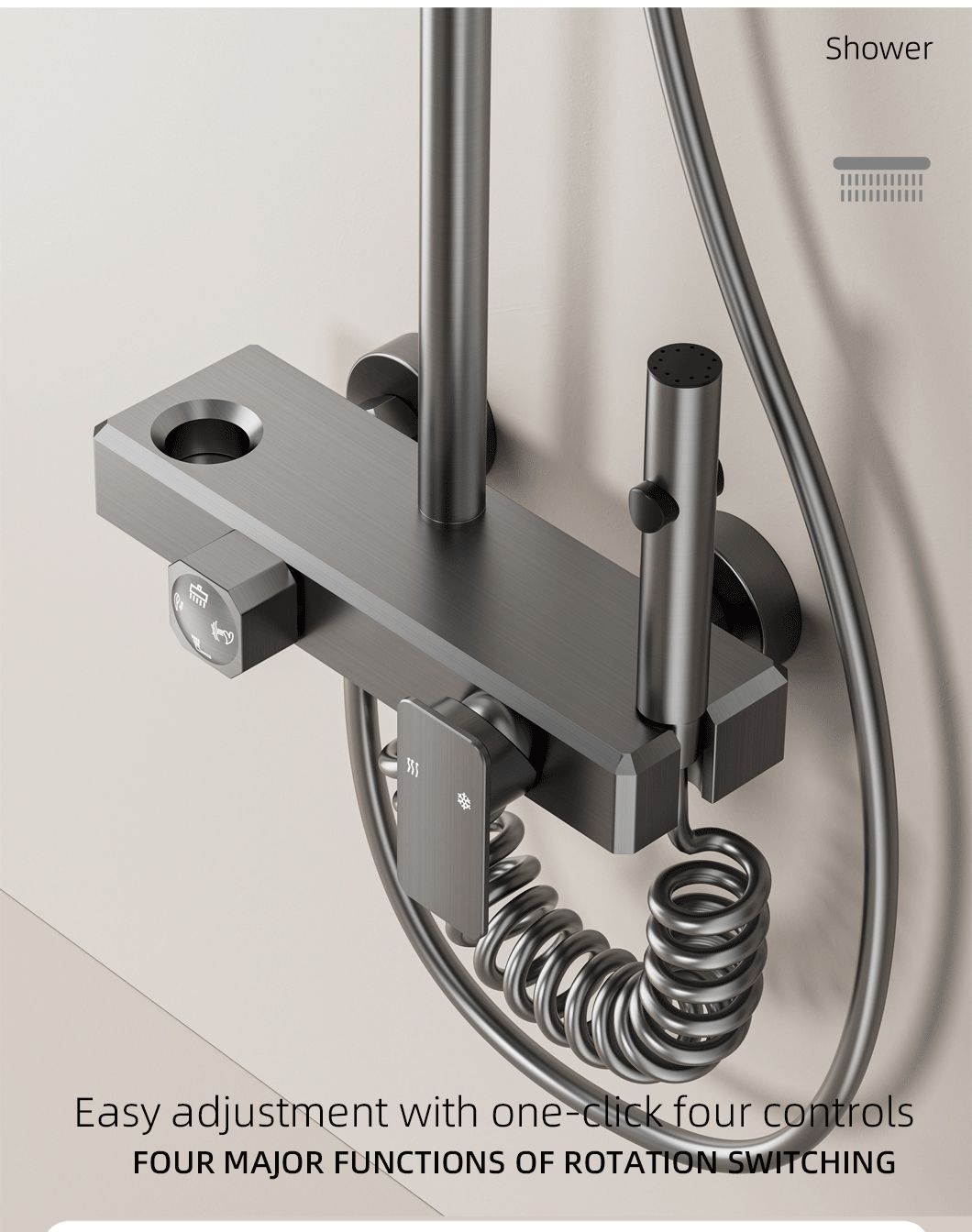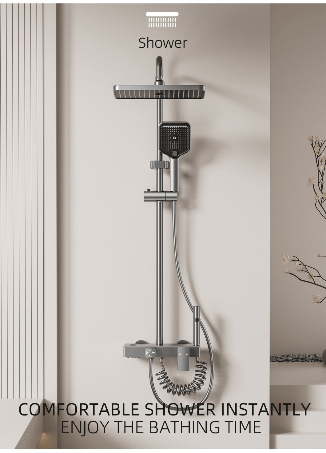 New style complete shower set, made of space aluminum, with constant temperature control. Durable, corrosion-resistant, easy to install, perfect for modern bathroom decoration and daily use.