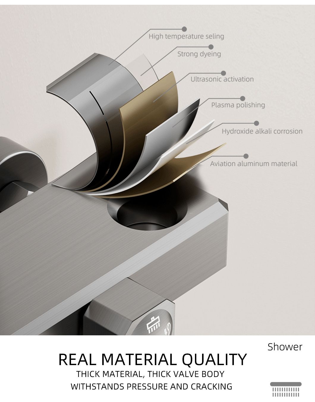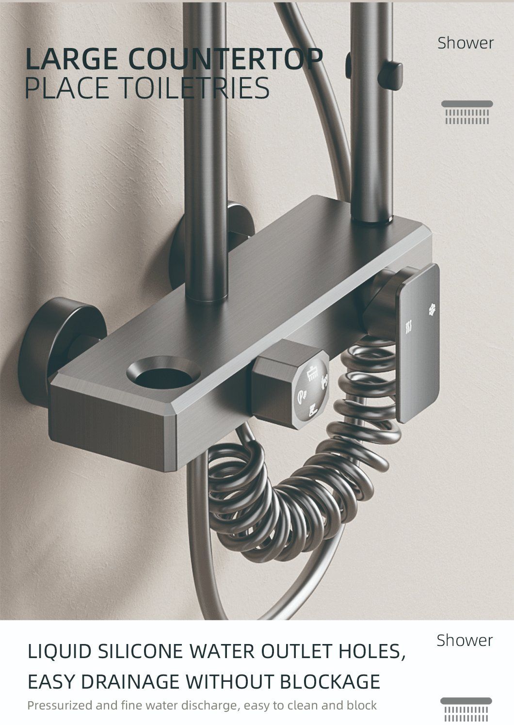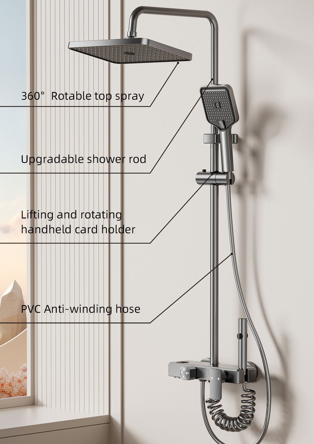 New style complete shower set, made of space aluminum, with constant temperature control. Durable, corrosion-resistant, easy to install, perfect for modern bathroom decoration and daily use.