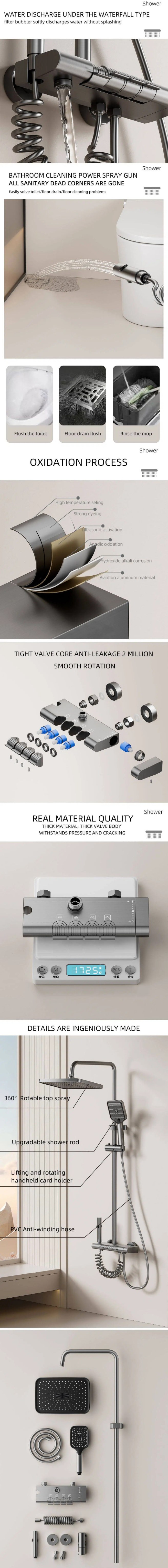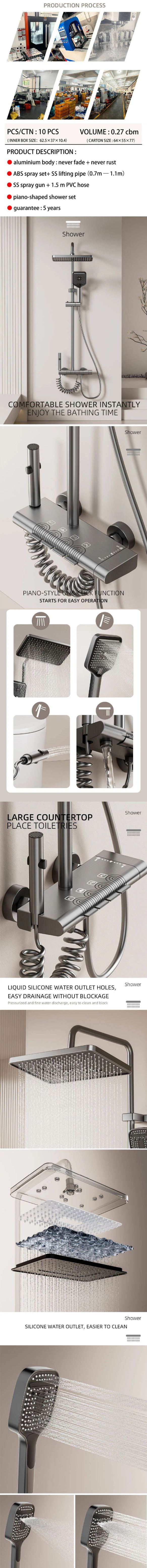 This professional hot selling wall mounted shower set is made of high-quality aluminum, sturdy, rust-proof and durable. It features a stable water flow, easy to install and operate. The modern design fits all bathroom styles, ideal for household and hotel use, bringing you a comfortable and convenient bathing experience.